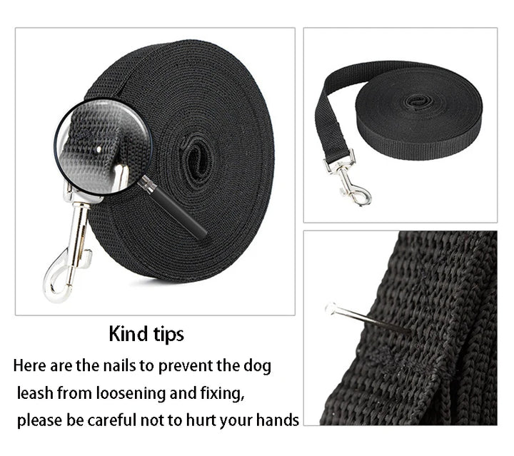 This pet leash is made of nylon, sturdy and durable, suitable for puppy, small medium and large dogs. 360-degree rotating metal hook, durable. A variety of optional length: 1.2 m / 1.5 m / 1.8 m / 3m /4.5 m /5m / 6 m / 10 m, suitable for indoor and outdoor dog lead rope.A pet leash is necessary for pets to go outdoors.