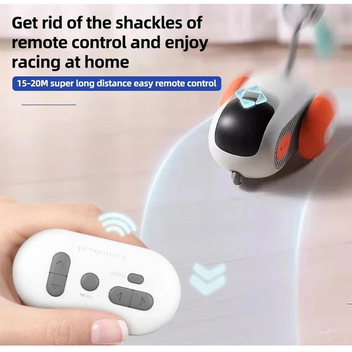 Two modes: Automatic mode, the toy car will automatically move, sense obstacles and avoid them, without any operation, suitable for cats to play on their own. Remote control mode, the toy car can be moved through the remote control, suitable for owners and pets to interact and enjoy a pleasant time together